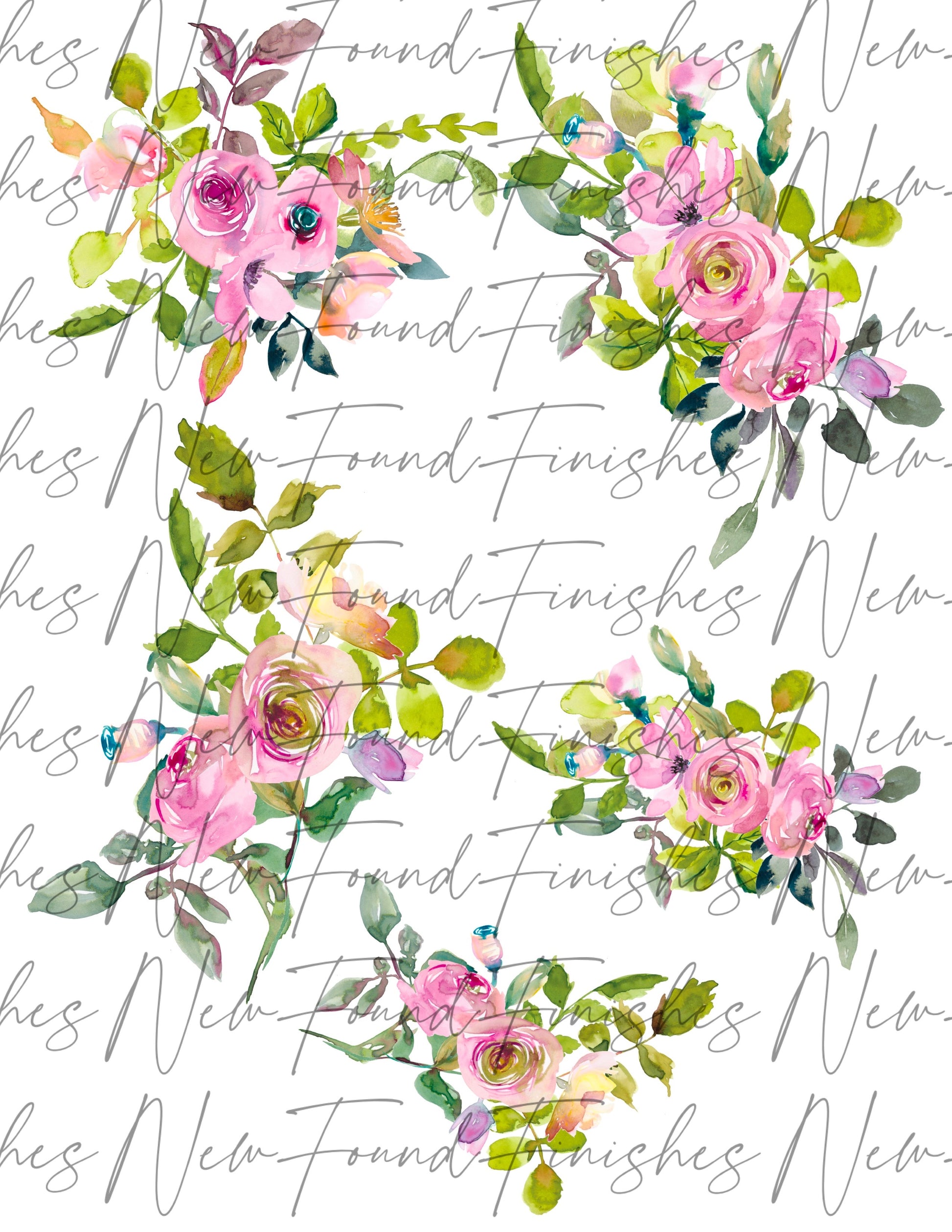 Floral variety page, floral designs are quite large, some slightly larger than 5 inches long some shorter. Sheet is 8.5” x 11” Laser Printed Waterslide ready for immediate use.