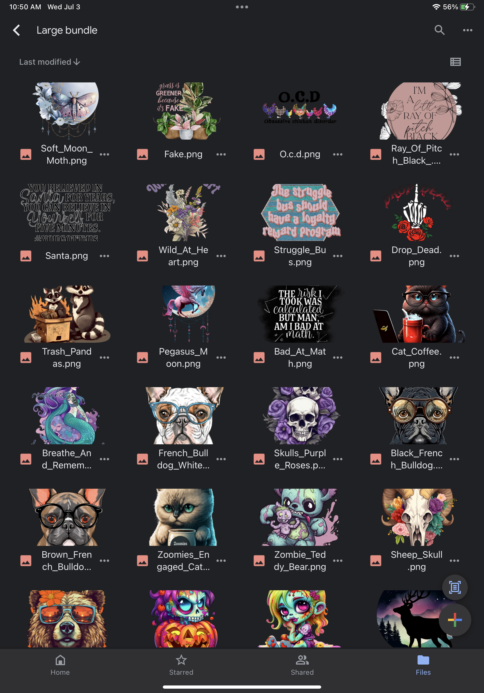 Purchase includes Large google drive with 100 PNG images.  All images were designed by me.  No additional licenses needed to use them on physical end products to sell.